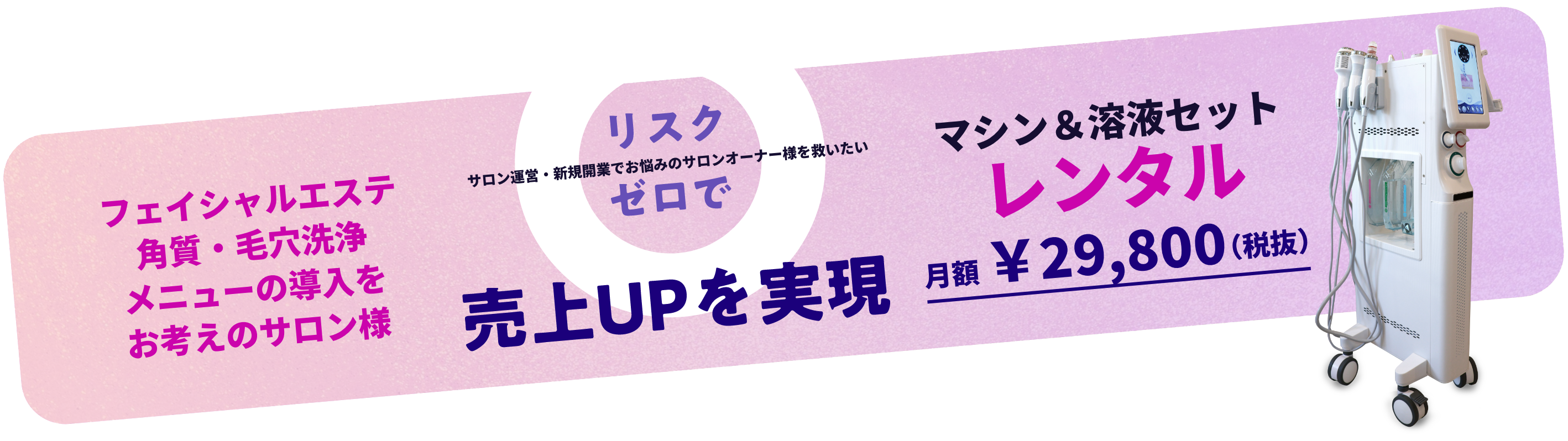 人気の美容機器(市場価格88万円)を月額レンタル代金のみで導入が可能に!