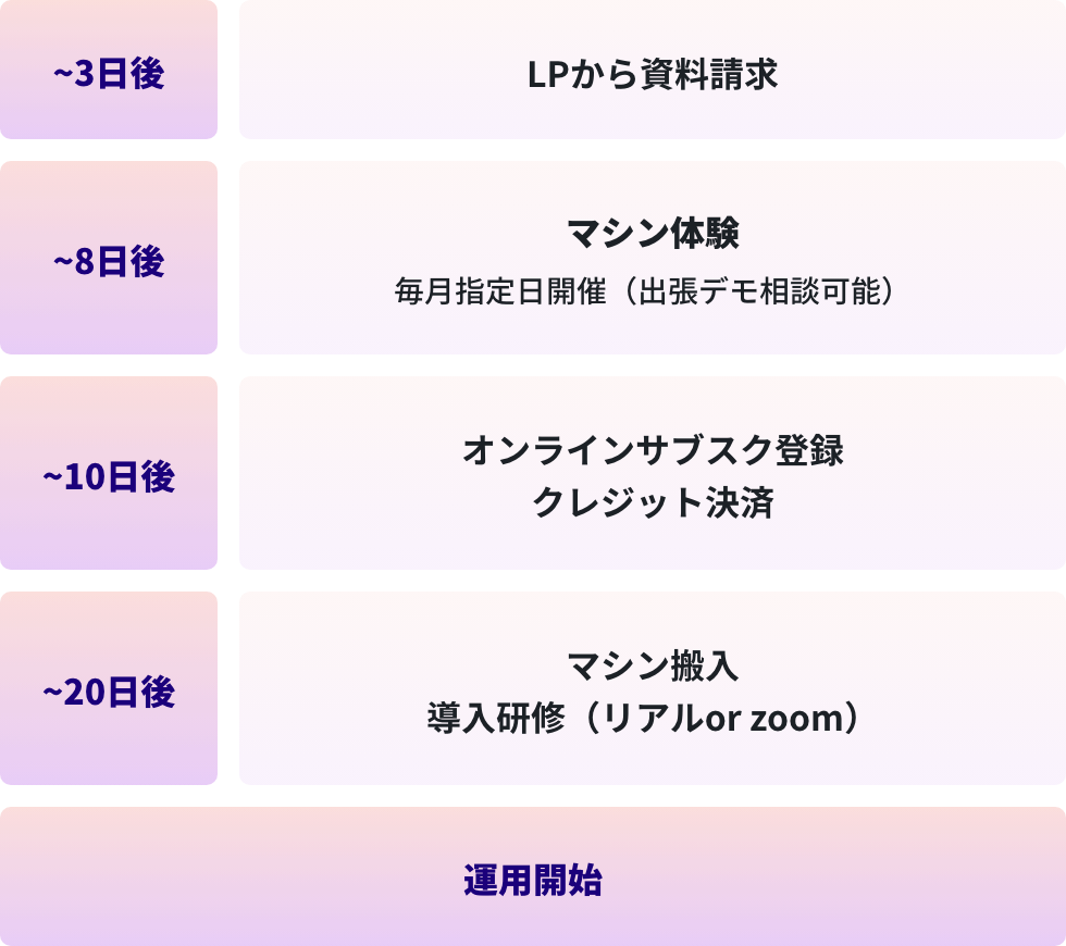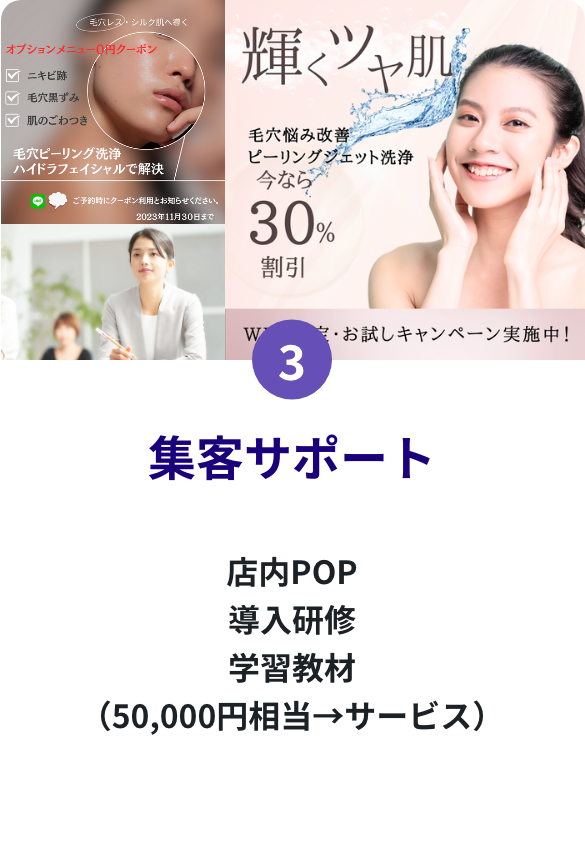 マシン納品後にズームに繋いでご説明になります。いつでも確認できる施術の説明動画もお渡しします。フェイシャルメニュー導入が初めてなので不安、訪問して教えて欲しいという店舗様は訪問も可能です。ご相談ください。