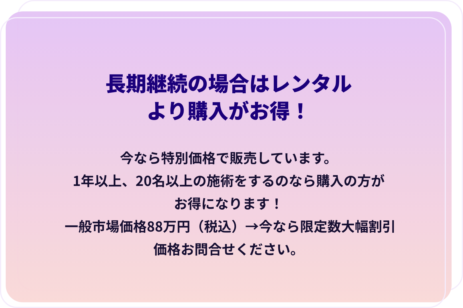 人気の美容機器(市場価格88万円)を月額レンタル代金のみで導入が可能に!