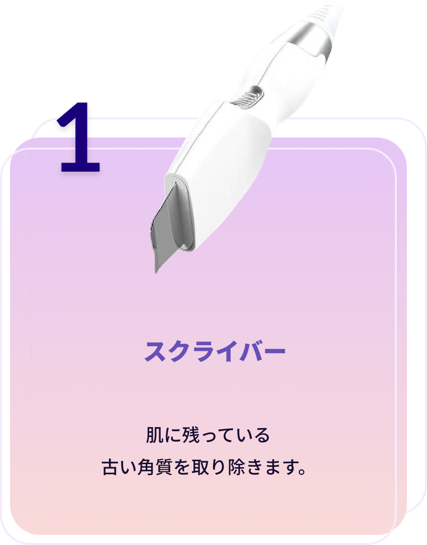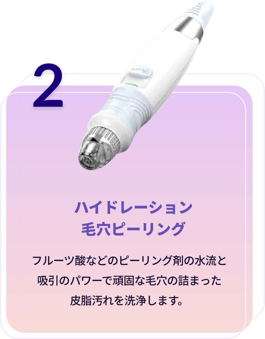 フルーツ酸などのピーリング剤の水流と吸引のパワーで頑固な毛穴の詰まった皮脂汚れを洗浄します。